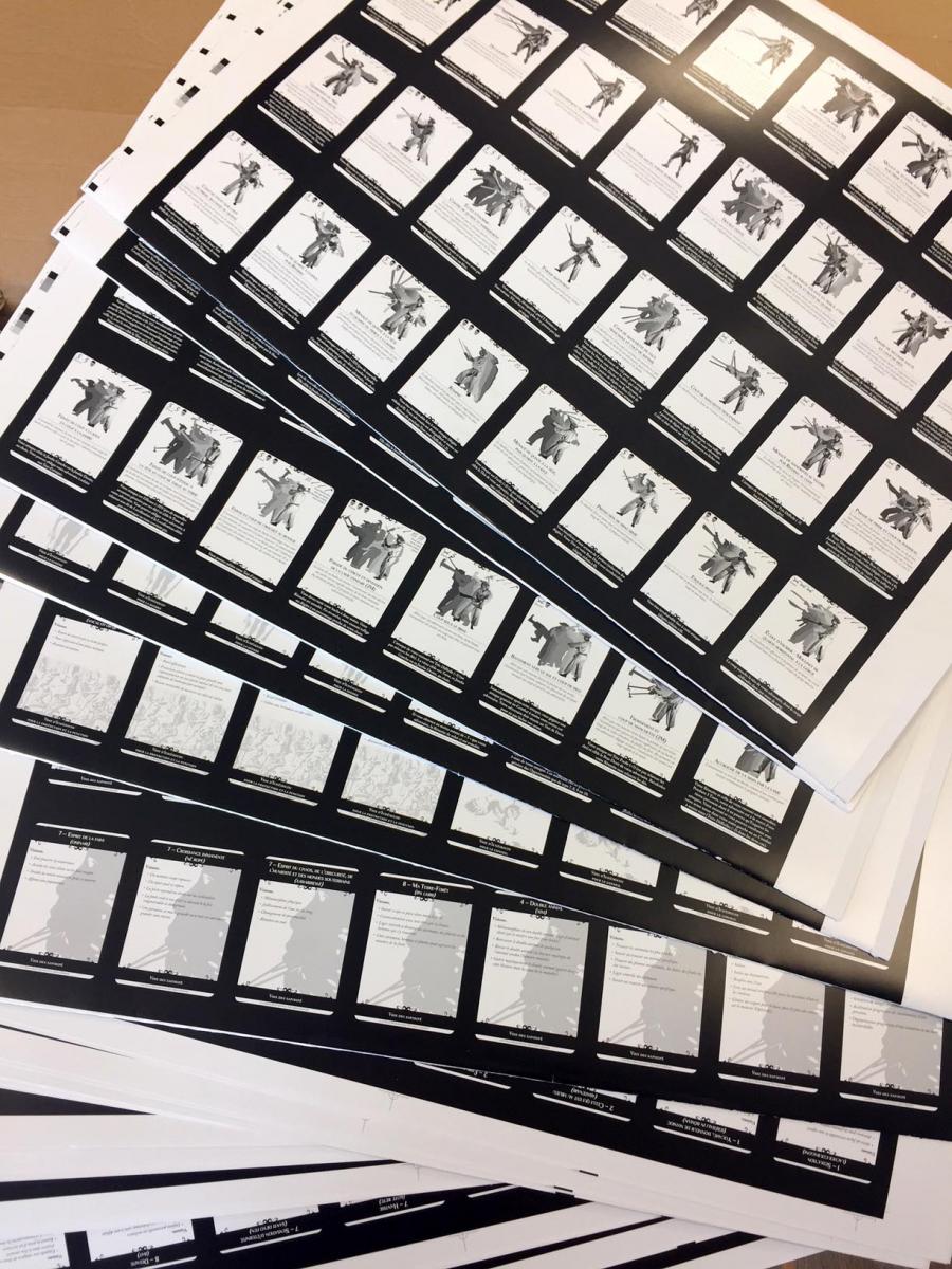 • Cartes de magie : une dizaine de backers seulement ont souhaité sélectionner cette option (alors que les cartes d'escrime, mais c'est logique, ont eu un franc succès en option). Nous avons donc contacté les backers de cette option pour leur proposer soit un exemplaire de plus des planches prédécoupées (voir plus bas), soit une compensation.