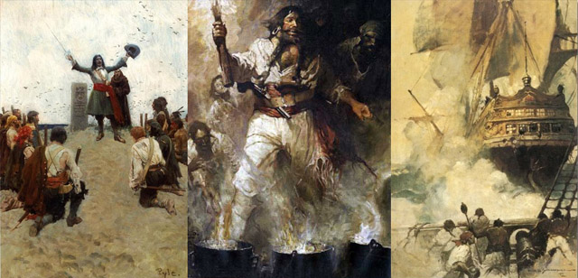 Enfin, ne doit-on jouer que des pirates, à bord de leurs fiers navires ? Contrairement à ce que l’on croit trop souvent, un « jeu de pirates » est loin d’être centré autour des navires, du combat naval et des abordages… Cela fait partie des aventures de nos chers forbans, mais il serait bien ennuyeux de se limiter à ça ! N’oublions pas d’explorer d’autres horizons et d’autres types de scénarios : exploration de contrées inconnues, découverte des vestiges des anciennes civilisations pré-colombiennes, utilisation des légendes locales (Cités d’or, mythe d’El Dorado ou de la Fontaine de Jouvence), intrigues politiques entre gouverneurs des différents pays ou au sein même de la communauté des pirates. Les navires et la mer sont des thèmes bien présents, mais ce ne sont sûrement pas les seuls ! Ici encore, le jeu vous incite à sortir des sentiers battus.