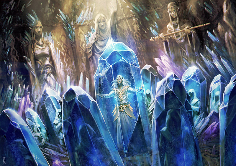 « J’ai imaginé cette aventure comme une quête de longue haleine partant de la découverte d'une chose étrange, que personne ne pouvait expliquer : l’image stupéfiante d’une montagne majestueuse dans une gigantesque boule de cristal », poursuit Laurent. « Initialement, je ne savais pas moi-même ce que ce serait. Mais, rapidement, j'ai imaginé que ce serait une ancienne ville elfe. Et, à partir de là, j'ai brodé et construit une campagne que j’ai fait jouer une seule et unique fois. Nos séances de jeu se sont étalées de 1998 à 2003, une bonne trentaine de longues séances en tout. » À la suite de quoi, Laurent a publié sur Internet ses notes, textes et plans.