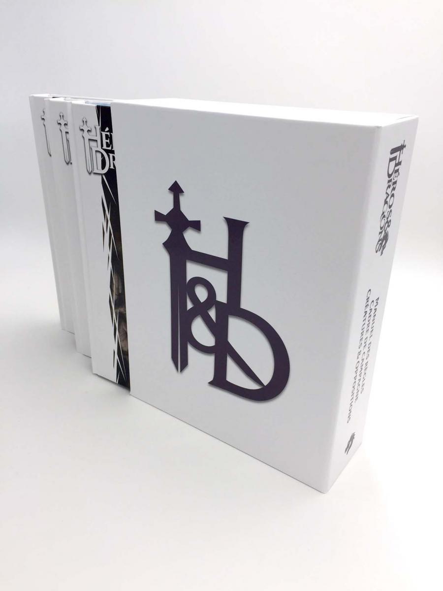 Option Early Bird Héros & Dragons*: une boîte rouge "hommage", dans laquelle vous pourrez ranger vos ouvrages (ou tout autre matériel de votre goût), accompagnée d'une lithographie de l'illustration de cette boîte fabriquée en quantité limitée.