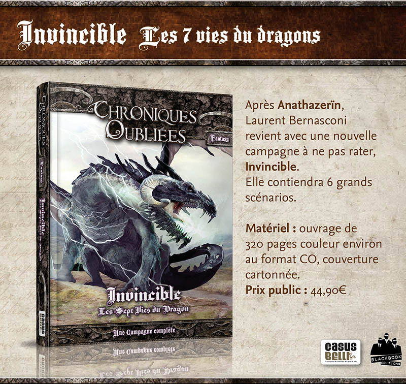 1 exemplaire de la campagne Invincible, version Chroniques Oubliées Fantasy (papier + PDF) + Bonus Campagne
