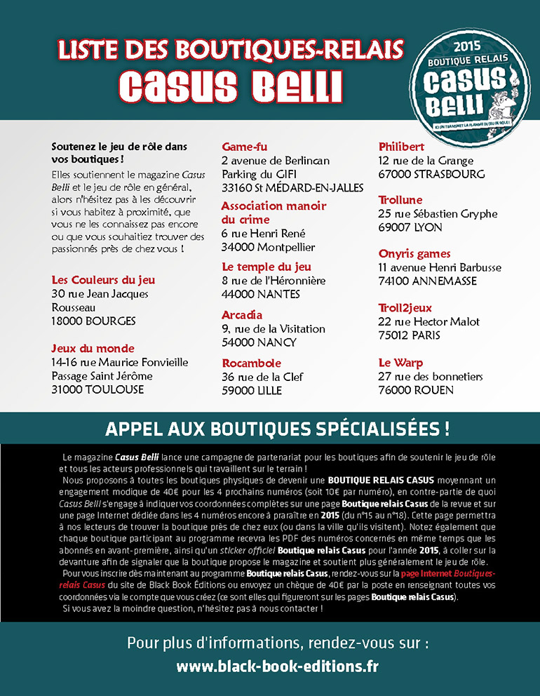 - Le Bazar du Bizarre (plusieurs boutiques, voir la liste des Boutique-relais Casus)