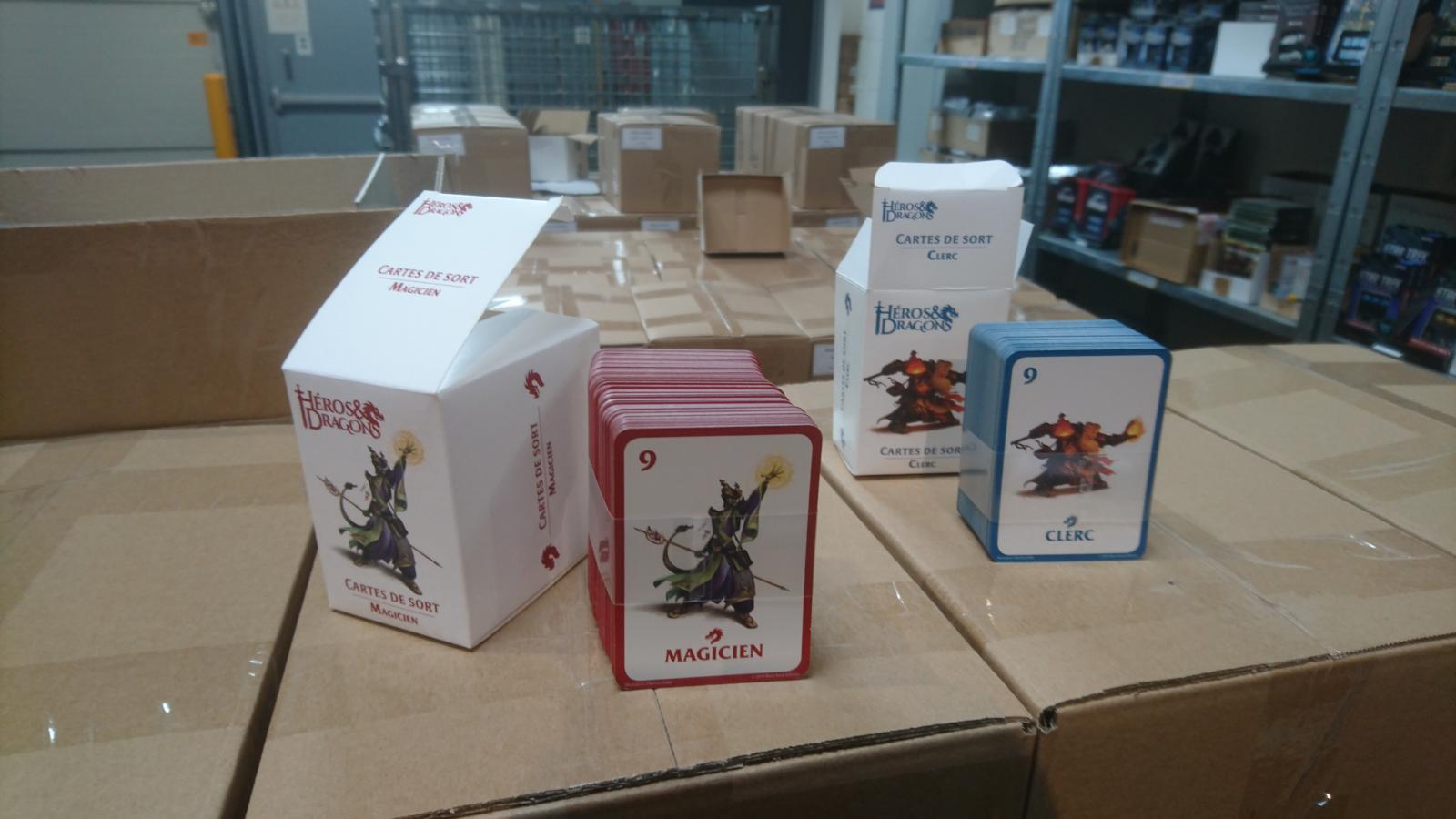 Nous avons reçu il y a quelques jours les réimpressions corrigées des cartes de Clerc et de Magicien qui étaient les ultimes produits qui nous manquaient pour finaliser les derniers envois.