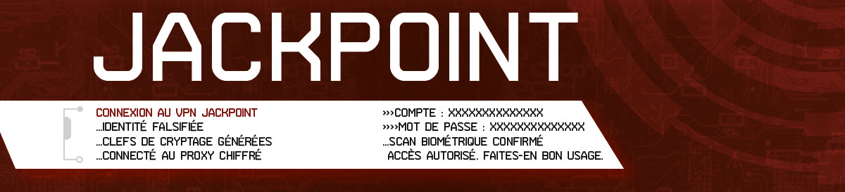 > Pour la suite, nous avons momentanément rerouté nos deckers en direction du serveur Pavillon noir 2, mais ne vous inquiétez pas, le décryptage du fichier Lockdown devrait arriver sous peu, la double personnalité de notre decker ayant fait tourner ses machines chaque nuit. [Tag : Lockdown]