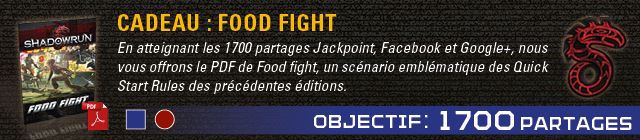 > Vous en voulez encore ? La mini-aventure Food Fight, un classique indémodable de la gamme Shadowrun début ses débuts, est disponible en PDF en cliquant ici. Idéal pour tester le jeu en mode initiation où pour s'amuser avec un peu d'action entre deux scènes cérébrales. Tag : Boîte d'initiation Shadowrun]