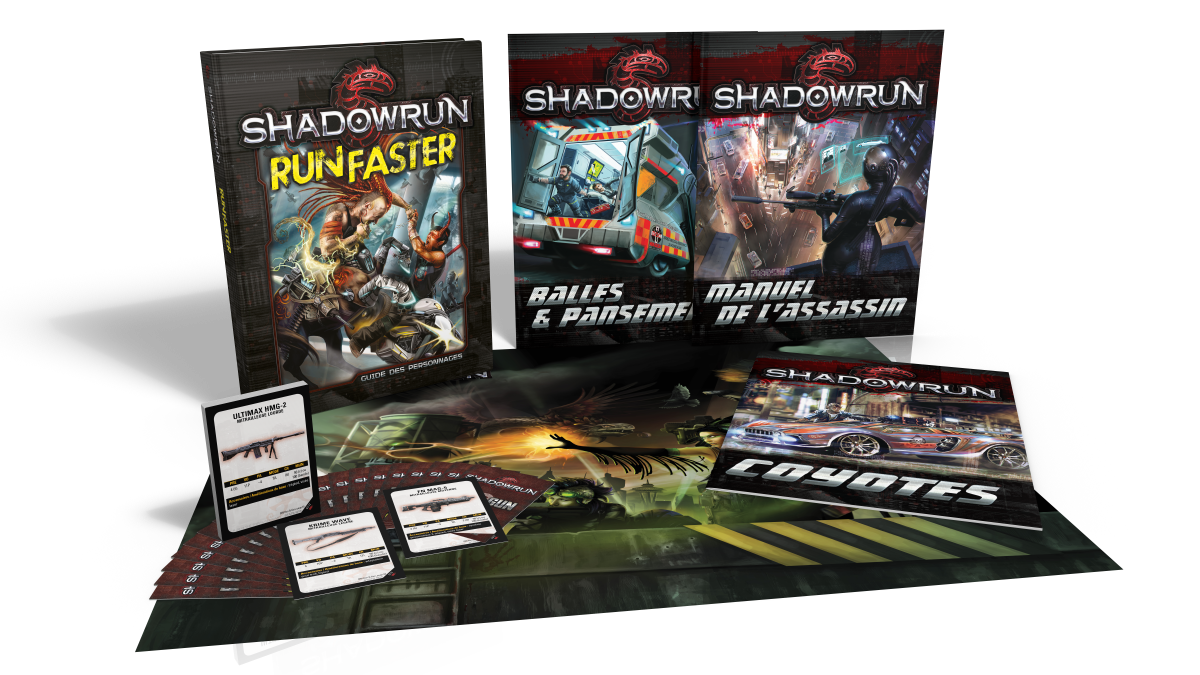 • Livret du MJ, un guide pour le MJ et six aventures pour entrer progressivement dans la carrière de shadowrunner, avec la description de lieux et de personnages non-joueurs typiques pour les agrémenter.