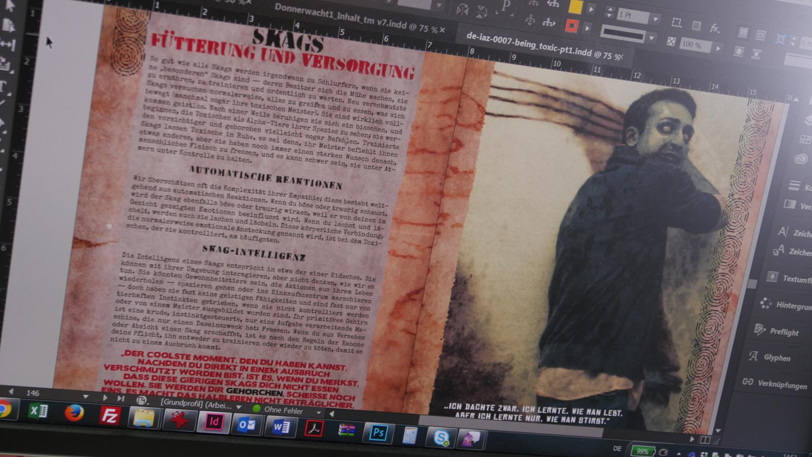 Es gibt nicht wahnsinnig viel zu berichten, die Übersetzung läuft, das Layout ist wie zu erwarten war ... spannend. Und Mháire sitzt an der deutschen Spielhilfe "Toxisches Deutschland".
