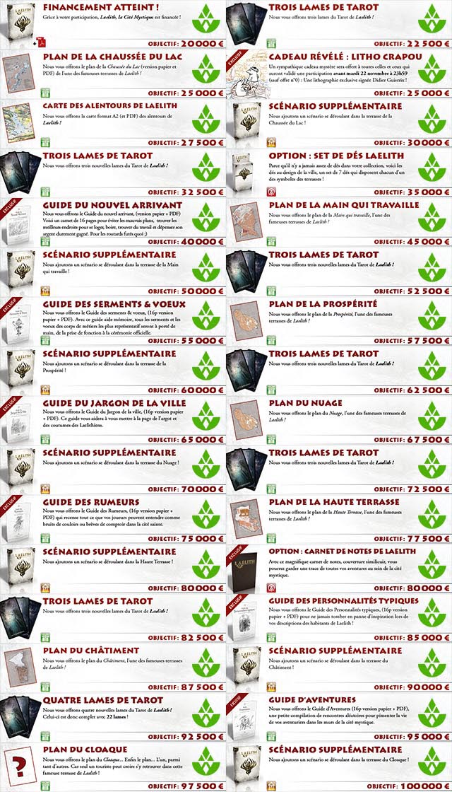 La préco participative pour les deux nouvelles campagnes Laelith, c'est parti - un projet dont le financement est déjà garanti, avec près de 50K euros déjà levés, des cadeaux et des améliorations !