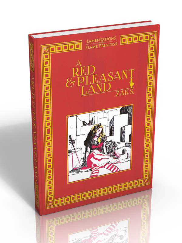 Les deux premiers volumes de la gamme, libérés dès l’offre initiale de cette précommande, sont la tristement célèbre aventure Death Frost Doom (64 pages) dans sa version révisée, tout aussi mortel que les classiques du genre, et Red and Pleasant Land (192 pages couleur), une version très trash de l’univers d’Alice au pays des merveilles qui aurait croisé le chemin de Dracula ou Barbe Bleue.