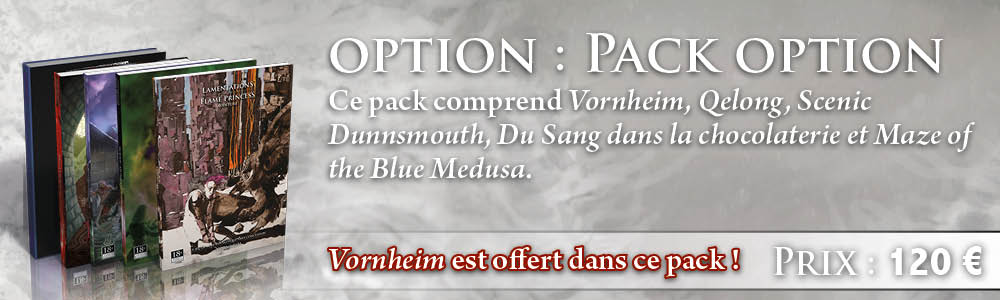 Au cours de la précommande vous pourrez libérer plusieurs autres suppléments optionnels : Vornheim le bac à sable ultime sorti tout droit de l’imagination débridée de Zak Sabbath, Qelong le setting asiatique du fameux Kenneth Hite (l'auteur éminent pour Trail of Cthulhu et Night’s Black Agents) ou encore Scenic Dunnsmouth, un village qui réserve de bien mauvaises surprises aux joueurs... Aidez-nous à vous proposer le plus de matériel de jeu possible pour ce jeu !