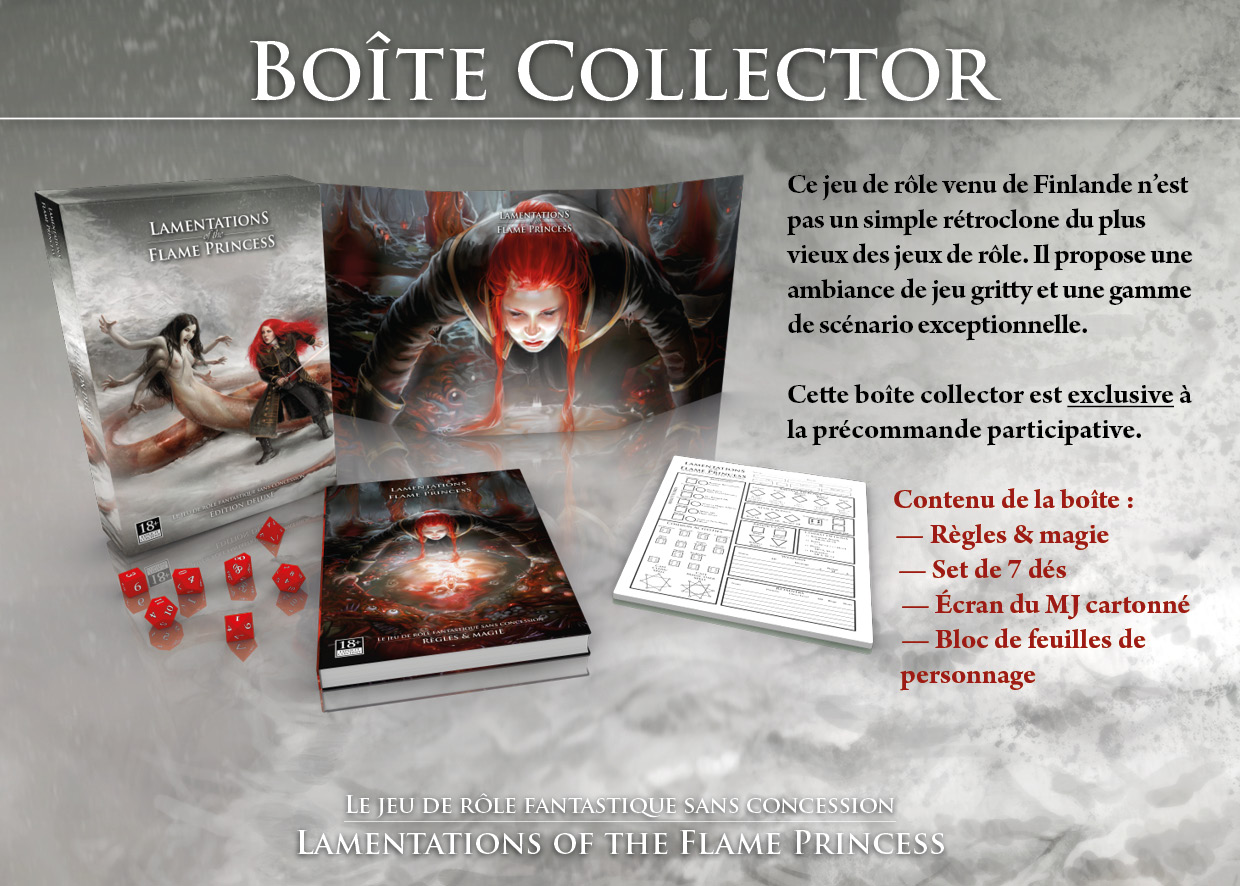 1 exemplaire de la Boîte Collector Lamentations of the Flame Princess (papier + PDF) + cadeaux