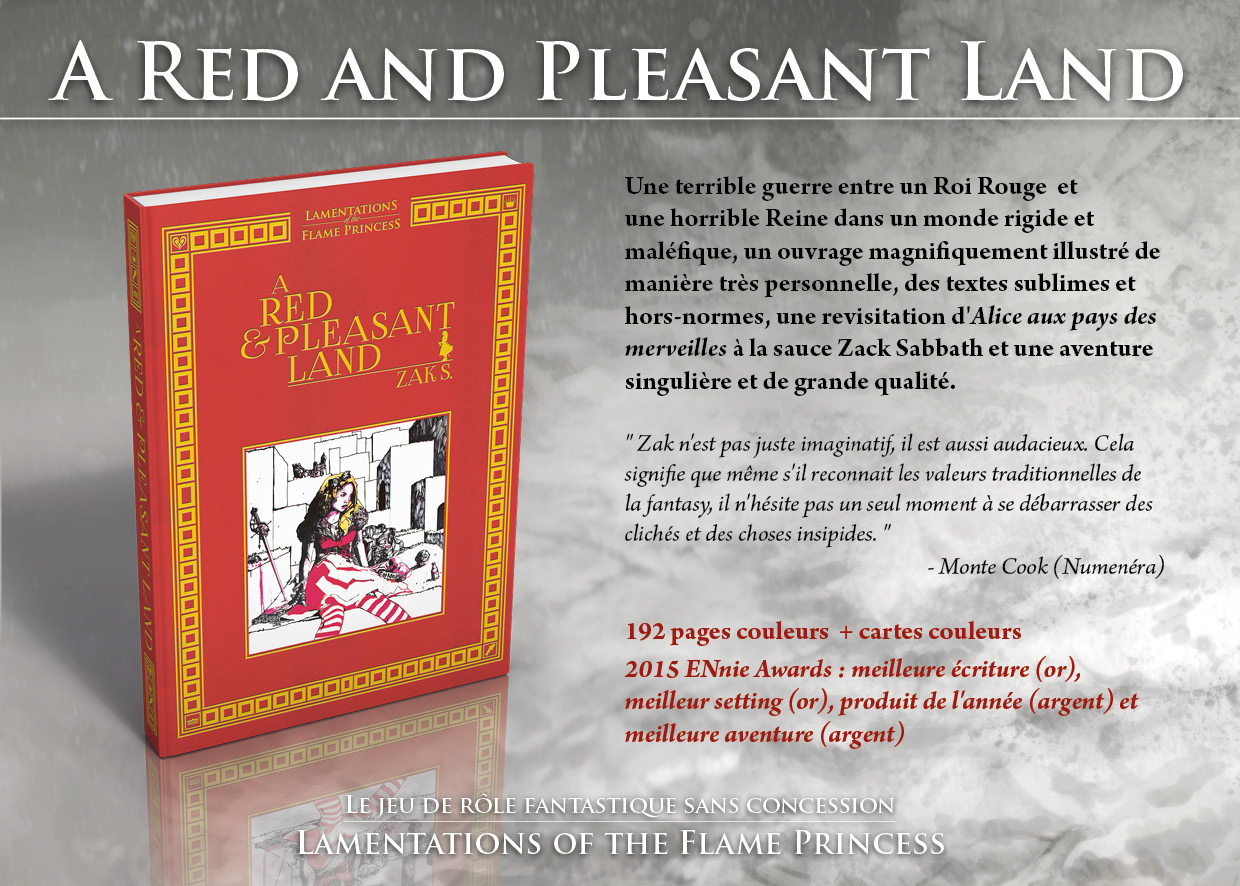 PRIX : 136,50 ¤ HT. Uniquement valable pour les magasins spécialisés France et Zone UE1 (numéro de SIRET obligatoire). 3 x la Boîte Collector Lamentations of the Flame Princess et 3 x le supplément A Red and Pleasant Land + 3 x cadeaux