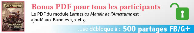 Actuellement : 2 ouvrages papier** +2278 PDF Pathfinder pour 150€ (au lieu de 860€ !!!)Bonus débloqués (PDF) :