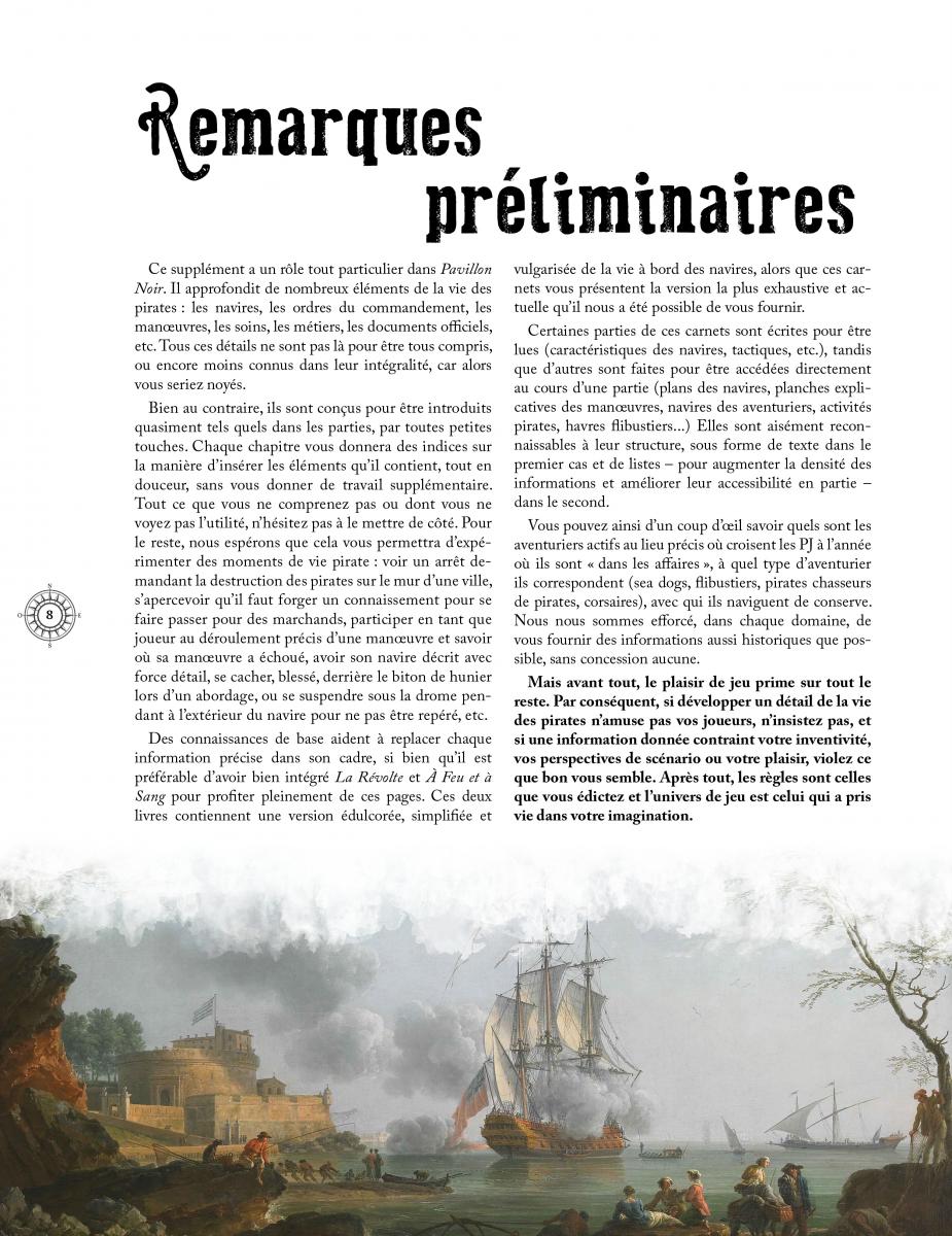 Nous espérons que vous apprécierez le travail dantesque que ce supplément, pourtant offert, à nécessité aux équipes. De l'auteur, qui n'a jamais compté ces jours pour partager sa passion pour la piraterie à travers le jeu de rôle, aux maquettistes - dont les corps de certains d'entre eux n'ont jamais été retrouvés (d'ailleurs seuls deux maquettistes ont véritablement survécu... pensez à les remercier et à les soutenir dans leur difficile retour sur le plancher des vaches : bravo Roms et Jé !!!).