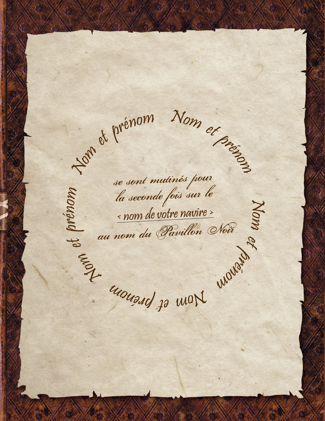 Une fois le crowdfunding terminé, nous vous demanderons de nous fournir les noms qui figurerons sur cette page, ainsi que le nom de votre navire, comme indiqué sur l'aperçu de la lettre de "mutinerie" ci-dessous. Le nombre de noms peut varié évidemment.