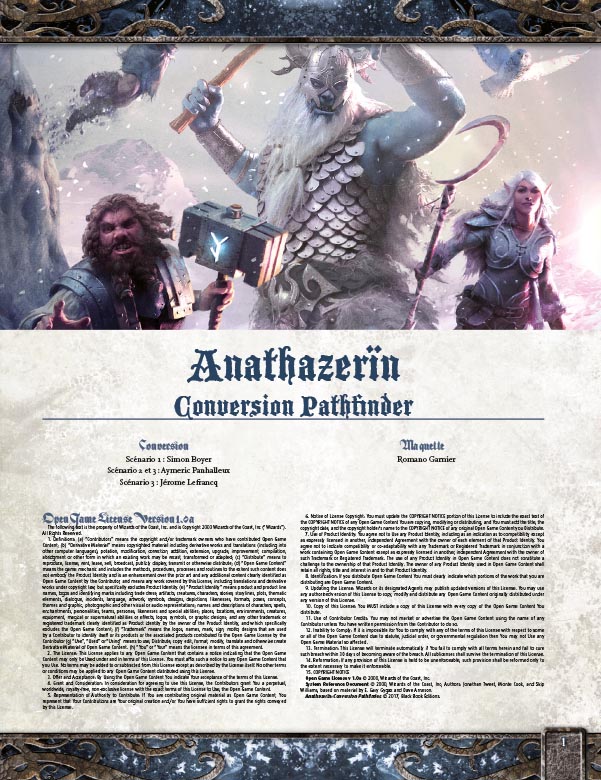 Après la conversion Pathfinder des 3 premiers scénarios d'Anathazerïn, voici une nouvelle mise à jour du PDF de cette conversion.