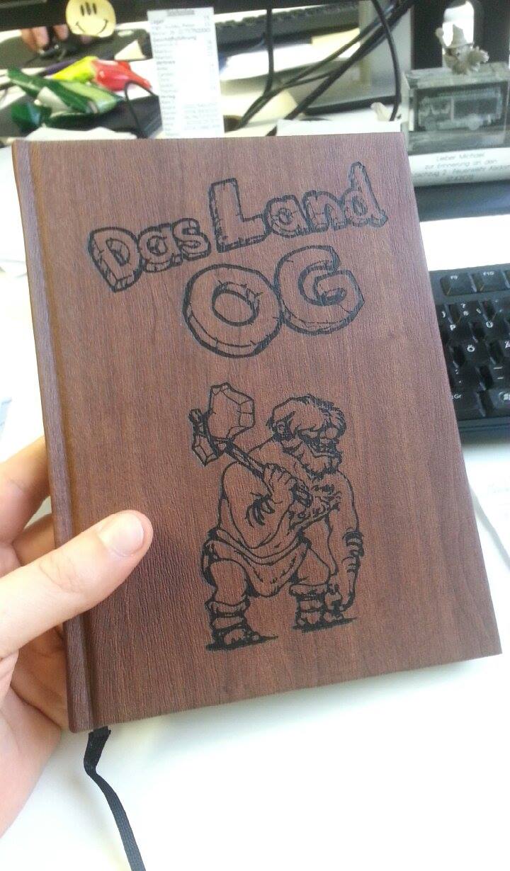 Erfolg verpflichtet und das geilste Keulenschwingerspiel des Universums braucht natürlich ein angemessenes Gewand. Darum kriegt das Land-Og-Buch ab diesem Bonusziel einen Kunstledereinband in schöner Paläo-Optik. Das geniale Bisher-Cover kommt natürlich dann als Innenblatt rein!