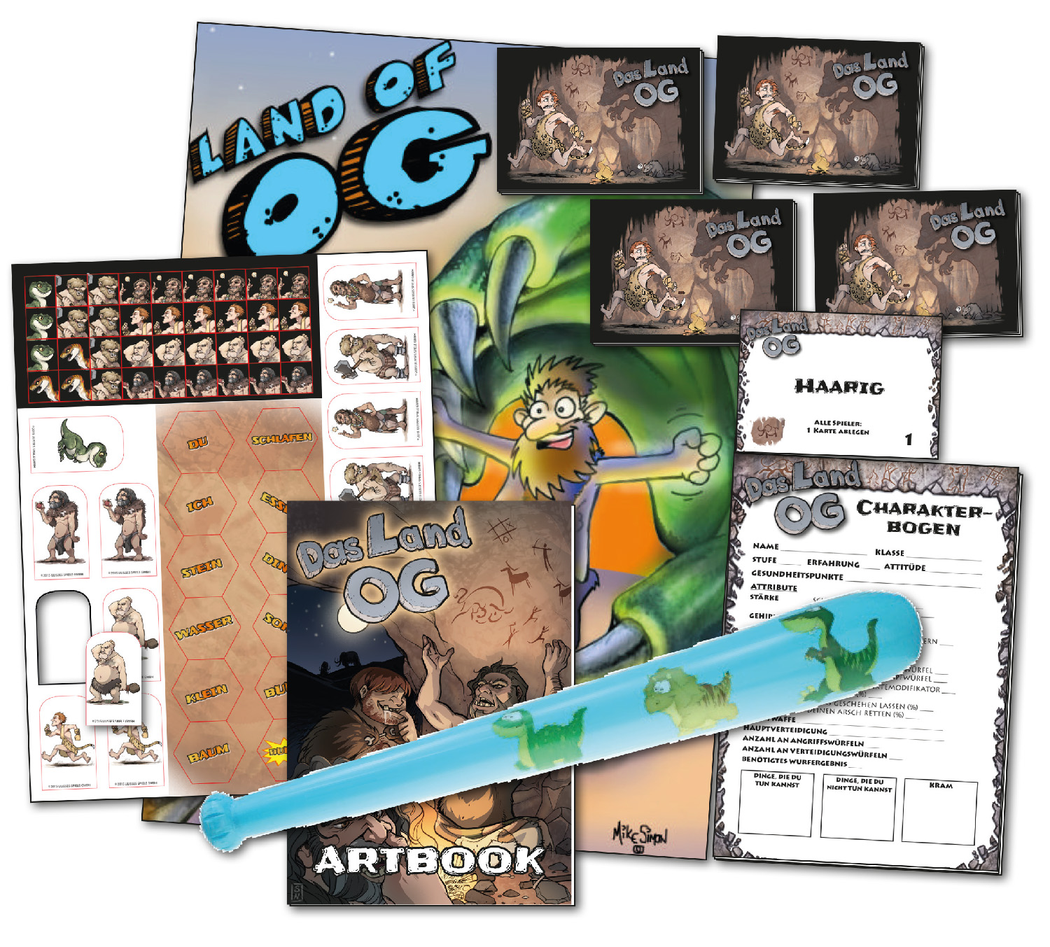 André Wiesler schreibt einige atemberaubende Szenarien für Das Land Og - bereitet euch auf grausige Säbelzahntiger-Überfälle vor, rechnet mit unlösbaren Problemen wie toter Kurzarm versperren Höhleneingang oder freut euch auf erotische Höhepunkte wie Viel-Rumms-Schleif. Die Szenarien wandern mit ins Buch.