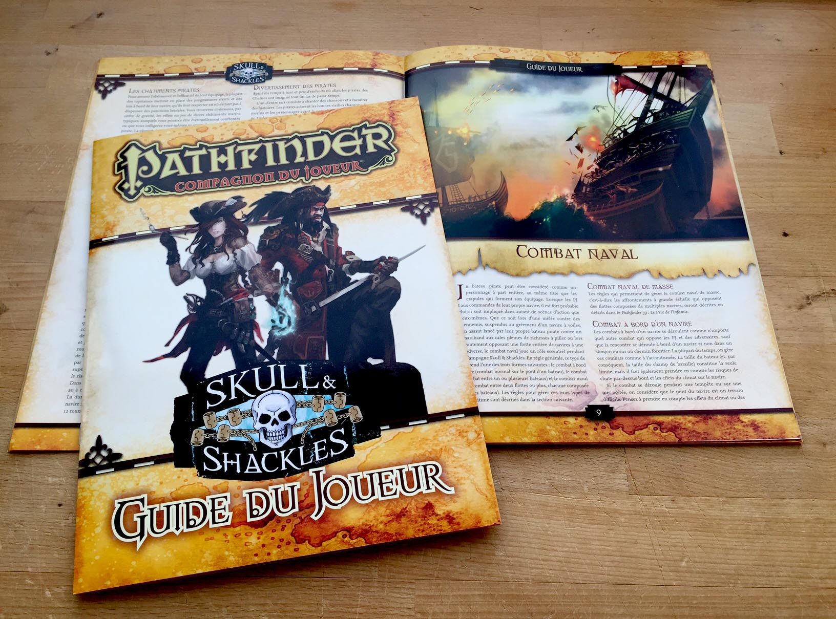 Après les 6 lithographies, voici le Guide du joueur Skull & Shackles ! Tout beau, tout chaud (et en deux exemplaires sur la photo pour vous montrer la couverture et le livret ouvert).