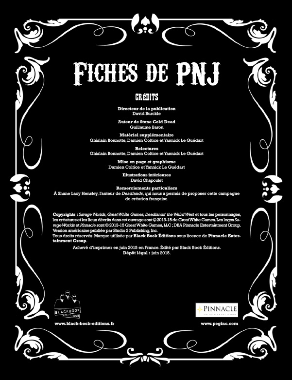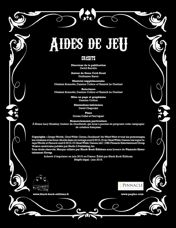 Comme d'habitude, si vous avez des errata à remonter sur le forum, n'hésitez pas, nous aurons le temps de les intégrer à la version imprimée ! ICI --> http://www.black-book-editions.fr/forum/index.php?board=168.0