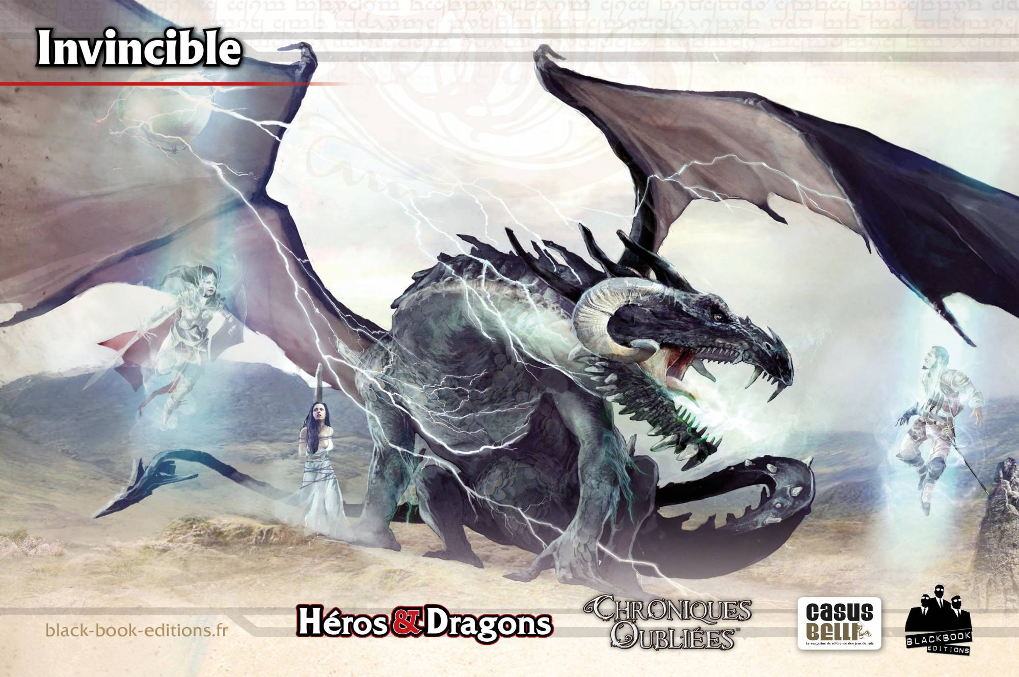 Après le succès d’Anathazerïn, les équipes de Black Book Editions et Casus Belli n’ont pas tardé à lancer le chantier d’une nouvelle campagne pour COF et c’est alors que Laurent Bernasconi a sorti de son sac sans fond une petite merveille en six longs scénarios. L’équipe d’Anathazerïn, auteur, éditeur, illustrateurs, a resigné et planchait donc sur ce qui se destinait à devenir la deuxième campagne publiée pour COF. Et puis un jour, les hommes en noir de BBE sont revenus de la GenCon d’Indianapolis aux Etats-Unis avec un sourire énigmatique aux lèvres. Ils étaient partis avec la ferme intention de signer la licence pour la traduction de la cinquième édition du plus vieux et du plus connu des jeux de rôle et étaient revenus bredouilles. Battus mais pas abattus, puisqu’ils savaient aussi que l’éditeur américain allait mettre à disposition le noyau des règles. L’équipe a commencé dès lors à se démener pour proposer Héros & Dragons.
