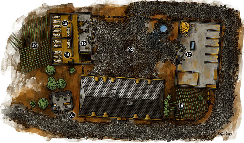 Il y a bien d'autres aspects à décrire dans le système, mais ils seront l'objet de différentes news publiées pendant la préco participative. En attendant, sachez néanmoins que le combat est centré autour de l'attaque/parade (l'armure réduit les dégâts infligés) ; que l'énergie vitale indique l'état de votre personnage ; que l'énergie astrale et karmique permettent d'activer la magie profane ou divine, que le niveau de douleur de chaque personnage dépend de sa jauge d'énergie vitale, et que des points de destin vous permettront d'influencer vos jets de dés...