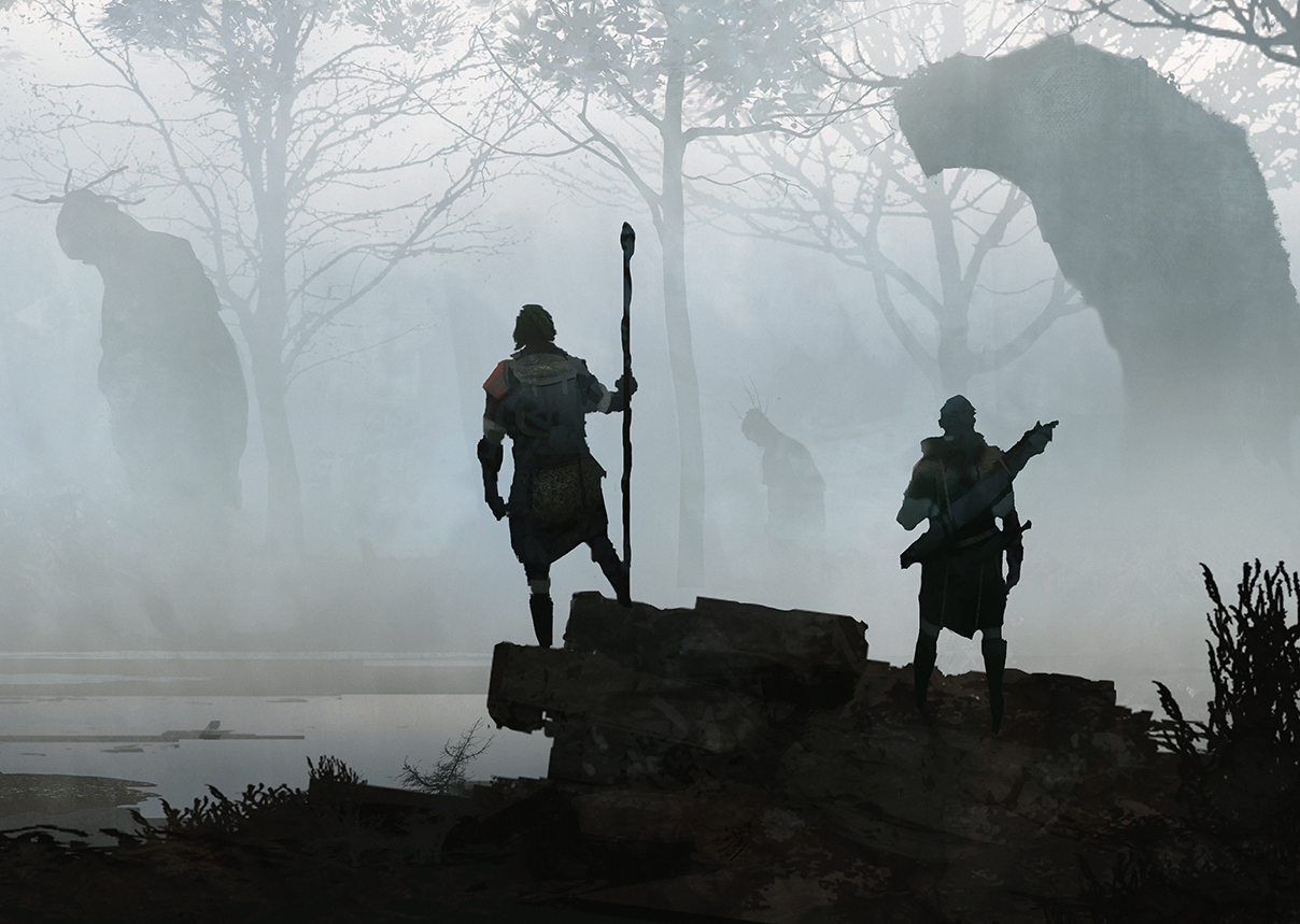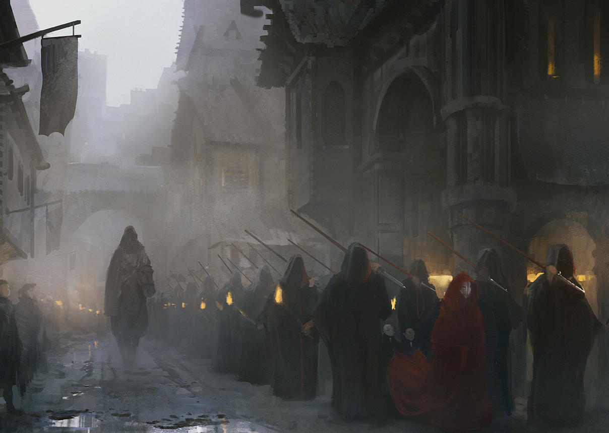Une brise piquante et hivernale vous suit, vous et vos compagnons, à travers les Titans, cette chaîne de montagnes séparant l’ancien Alberetor au sud depuis Ambria au nord. Atteindre votre destination n’est pas assuré. Beaucoup de vos frères et sœurs d’exil ont péri de faim ou d’épuisement sur ces routes, certains dans les mâchoires des prédateurs qui rôdent. En outre, certains de vos compagnons prétendent qu’un murmure, bien distinct du vent, s’adresse à eux, parmi les bourrasques glacées des montagnes encapuchonnées de neige. »