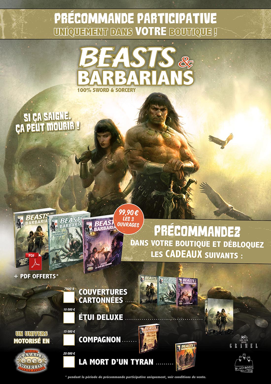 Nous sommes heureux de vous annoncer le lancement de la précommande participative pour Beasts & Barbarians, ce formidable setting Sword & Sorcery.