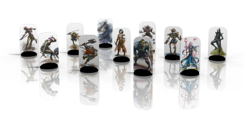 Pour fêter tout cela, voici un petit visuel des pions, en espérant que l'idée vous plaît ! D'ailleurs, je vous donne rendez-vous demain pour vous dévoiler entièrement les deux côtés du Flip-mat, notamment la scène qui servira pour le final de la petite campagne, à utiliser avec les pions bien sûr !