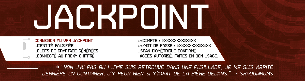 > Vous en voulez encore ? Si vous, chers utilisateurs du Jackpoint, parvenez à 2200 partages, nous fournissons en PDF l’adaptation des prétirés de la Boite d’initiation aux règles complètes de Shadowrun 5. Ainsi, si vous souhaitez passer de la Boite d’initiation au jeu complet, vous pourrez conserver vos personnages ! [Tag : Objectifs sociaux]