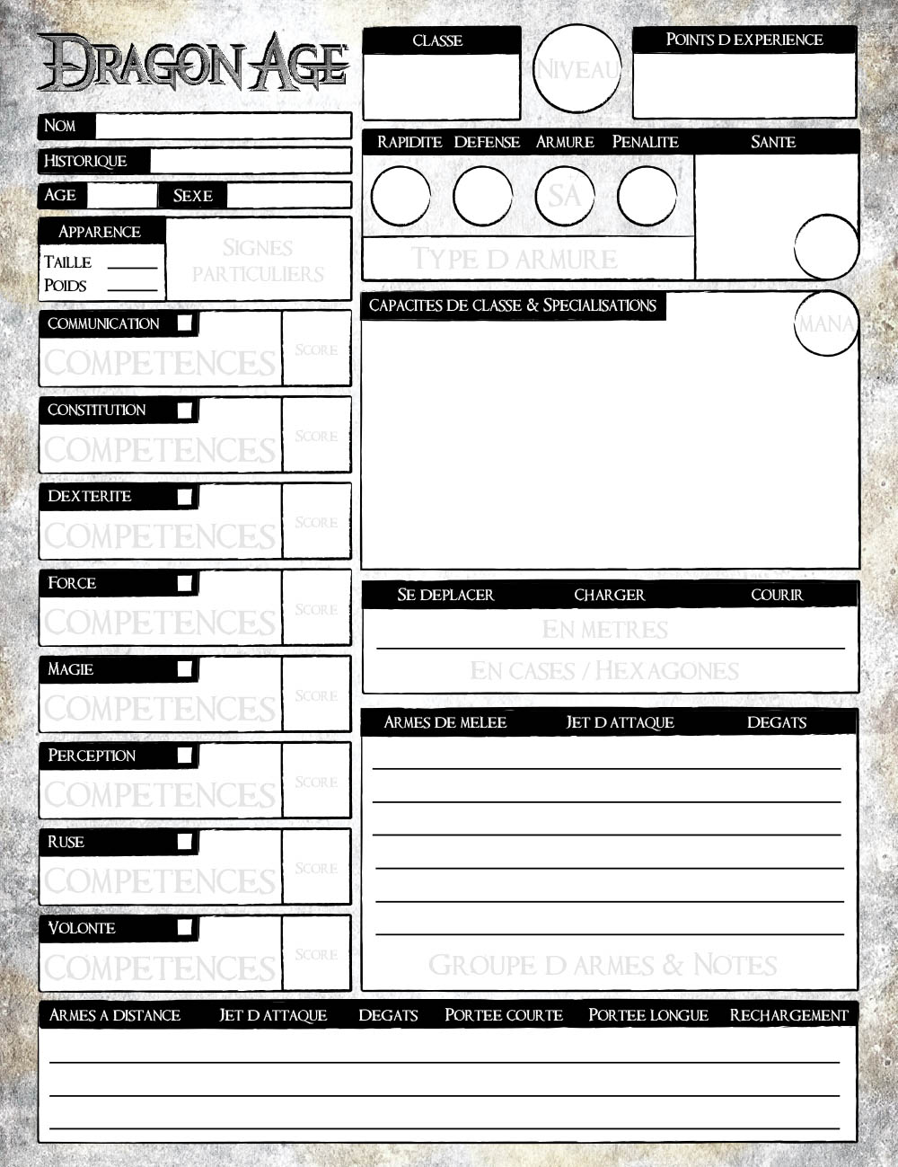 La maquette commence, avec en premier lieu la feuille de personnage, que nous vous mettons d'ores et déjà à disposition en PDF à imprimer, et les cartes de Thedas et Ferelden, que nous vous proposerons prochainement.