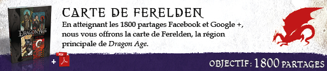 La course aux partages continue (leur utilité étant de nous aider à faire connaître le projet sur les réseaux sociaux, mais le bouche-à-oreille n'est pas à oublier si vous souhaitez soutenir le JdR Dragon Age !).