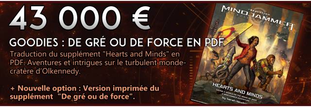 Contenu exclusif : Nous allons créer du contenu spécifique à la VF, supervisé par Sarah Newton. L’Amas de Corvus en sera le premier exemple : ce contenu exclusif est créé par Antoine Lejeune, démonstrateur officiel de Mindjammer (que vous avez pu croiser lors des démos en ligne ou lors de nos déplacements). Sarah Newton participera aussi à L’Amas de Corvus en créant un scénario exclusif, si le palier correspondant est atteint.