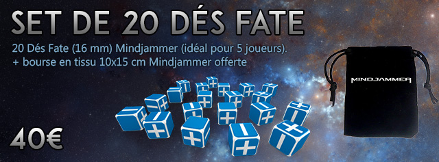 Offre 4 Early-Bird : Les 2 livres de bases + Set de 4 Dés Fate + 25 jetons Fate + Écran + Bloc de 50 fiches de perso + PDFs +Goodies