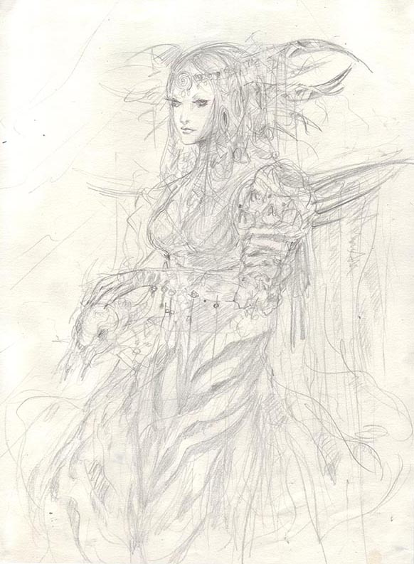 Paradoxalement je ne l'ai pas beaucoup utilisée en JdR, tout simplement parce qu'on me demandait surtout de faire jouer à E&D. Cependant, comme cette ville fut dessinée en même temps que je travaillais sur la publication de E&D, il y a des liens très étroits (mais sous-jacent) entre cette ville et Reah (la planète de E&D). Laelith étant conçue pour être adaptable à n'importe quel univers medfan (et sci-fi aussi), cette cité a servi dans le cadre d'une campagne E&D, où les joueurs devaient la rejoindre afin de piller/consulter (rayer la mention inutile^^) une bibliothèque, cruciale pour la suite de l'aventure.