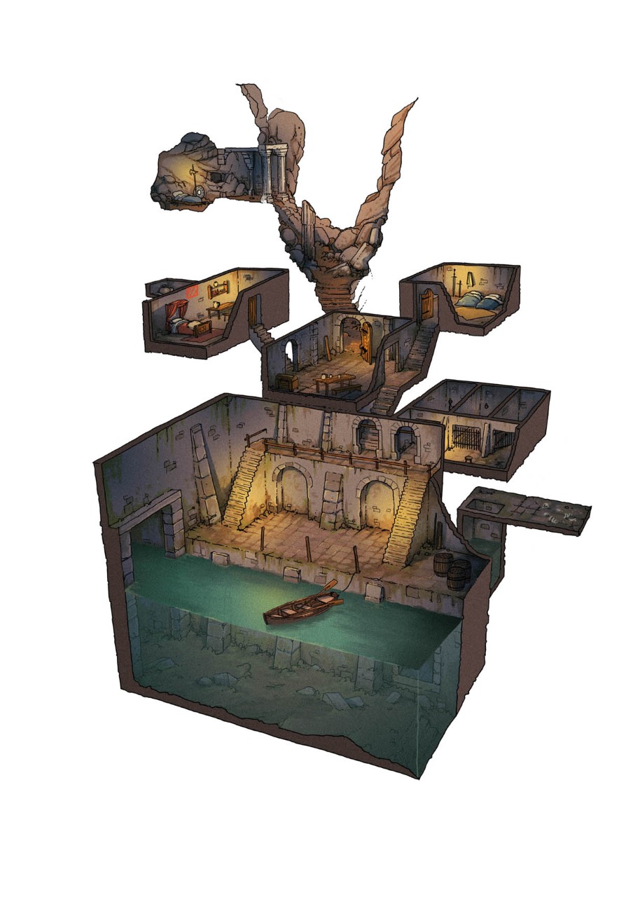C’est un drôle concours de circonstances, un alignement de planètes improbable qui fait que je me retrouve aujourd’hui à illustrer une ville qui m’a fait rêver toute ma jeunesse. Attention, séquence souvenirs avec trémolos dans la voix :)Tout à commencé par ma rencontre avec Géraud, lorsqu’il m’a proposé de réaliser le plan du palais des délices pour un B&A Casus. La collaboration a été parfaite et la team Casus m’a accueilli avec bienveillance. Le timing était bon, H&D était dans les tuyaux et BBE nous à proposé de réaliser les 20 bâtisses clés en mains de la préco ! Collaboration parfaite entre nous tous, je suis sûr que vous prendrez autant de plaisir à utiliser les fiches dans vos parties que nous à les créer !
