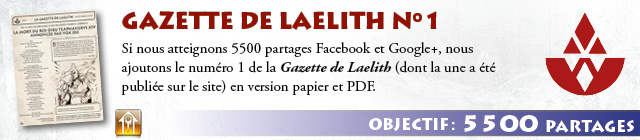 PS : certains doivent déjà recevoir en cadeau la Gazette de Laelith n°1 via la précommande participative du Compagnon + Boîte d'initiation Chroniques Oubliées Fantasy. Sachez que ceux-là recevrons cette Gazette avant les autres (puisque ceux qui ne l'auront qu'à travers Laelith devront attendre la livraison de Laelith, qui sera faite après celle du Projet CO). Cela fait doublon, mais c'est un cadeau que l'on ne pouvait pas empêcher les participants au projet de Laelith d'acquérir.