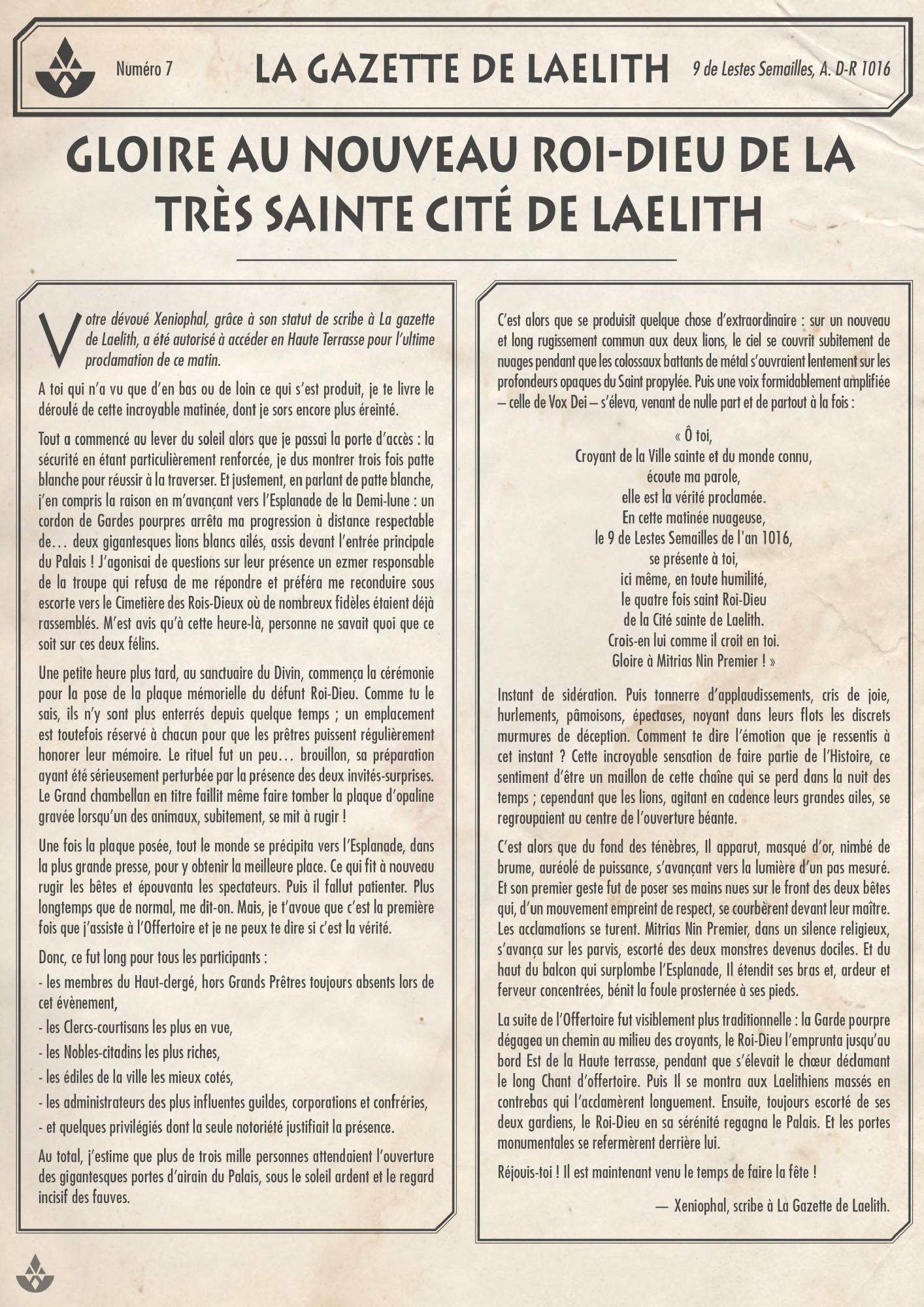 Laelith a son nouveau Roi-Dieu ! (09/11/2016 10:39)