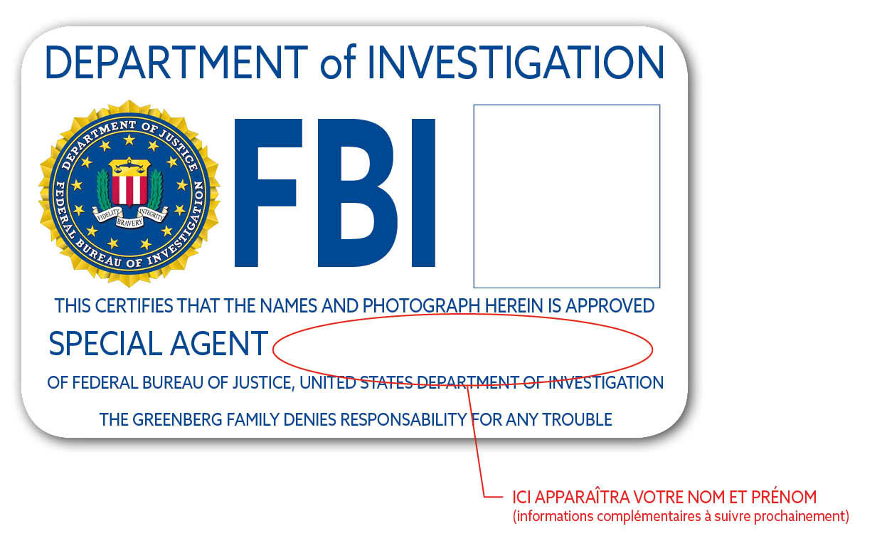=> Notez que nous attendons encore la carte du FBI personnalisée promise en cadeau, qui fera l'objet d'un envoi ultérieur.