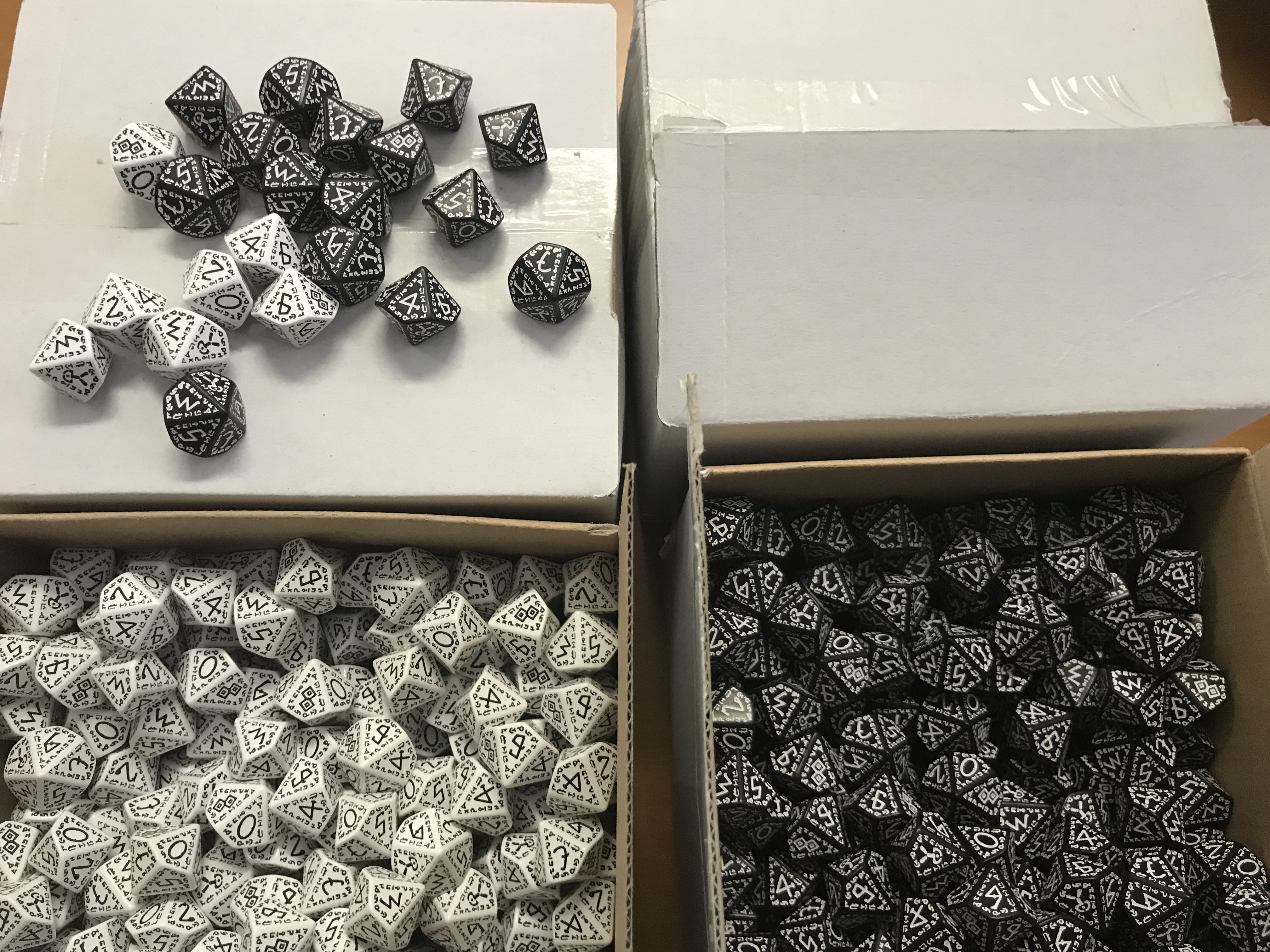Les dés spéciaux étaient offerts exclusivement avec les paliers, pas avec la boîte (qui est une option à part) et nous n'avons jamais parlé de les inclure ailleurs que dans les packs.