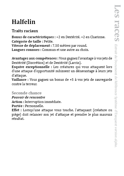 Dites-moi ce que vous pensez des fiches règles de ce type. C'est quelque chose que je fais lorsque j'initie des joueurs au jdr (pour certains jeux comme Chroniques Oubliées, je photocopie carrément les pages de races et de classes, que je distribue aux joueurs).