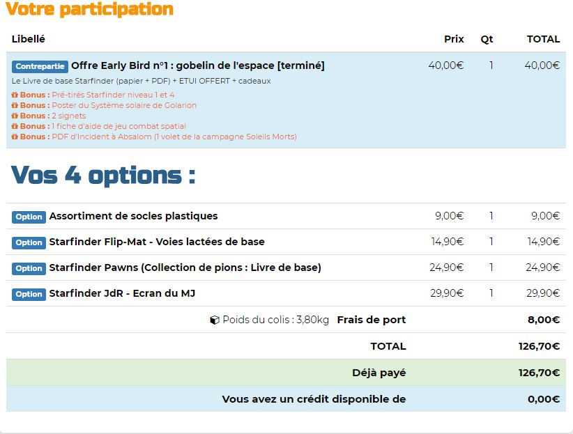 Voilà je me sépare de mon pledge Starfinder qui comprend les choses suivantes :