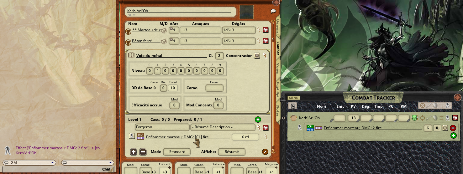 - Le combat tracker (ct) superpose des lignes coté hôte (MJ) => je ne m'y connais pas assez pour corriger ça