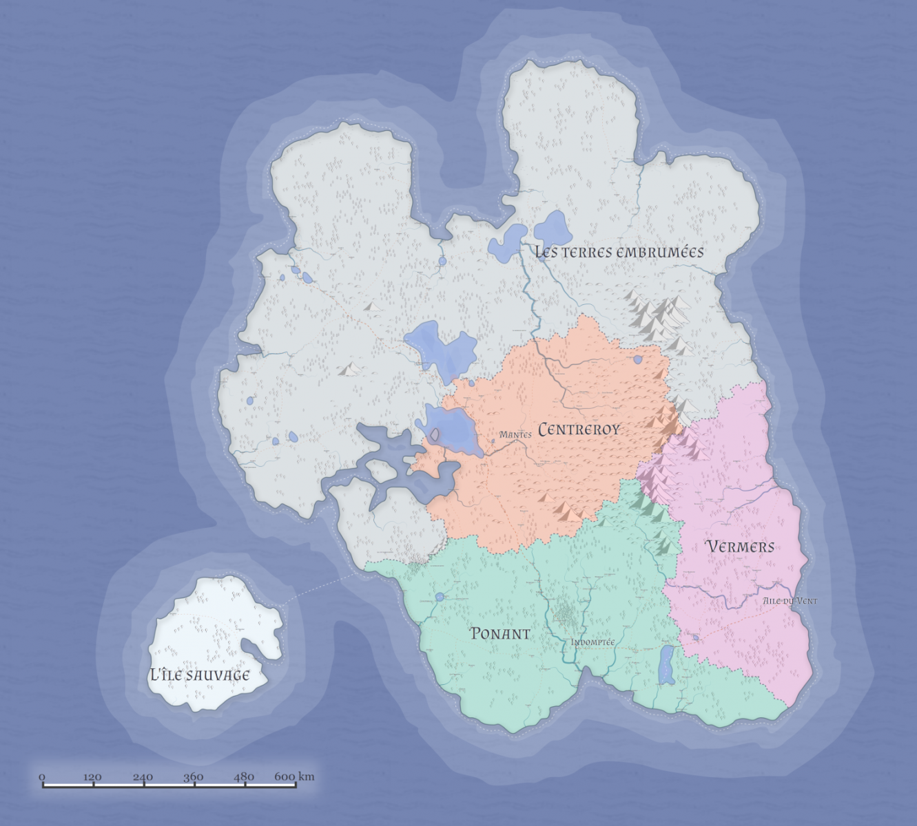 - Centreroy : Capitale Mantes. Gouverment : Royauté - surtout dans la zone de la capitale, plus on s'éloigne de la capitale moins la vision royale est présente. Le pays s'est étendu avec l'allégeance de migrants et de régions à proximité qui voulaient la protection de l'armée royale face à la brume et aux vandales. C'est une province assez rigide où la magie est juste tolérée, et les non-humanoïdes de "pur sang" ostracisés, rejetés voire tués. Où l'apparat, la noblesse et le paraitre compte plus que tout. Cependant plus on s'éloigne de Mantes plus le roi tolère des écarts, considérant les régions éloignées comme à peine civilisées. Cependant elles apportent main d'oeuvre et nourriture. Et des impôts.