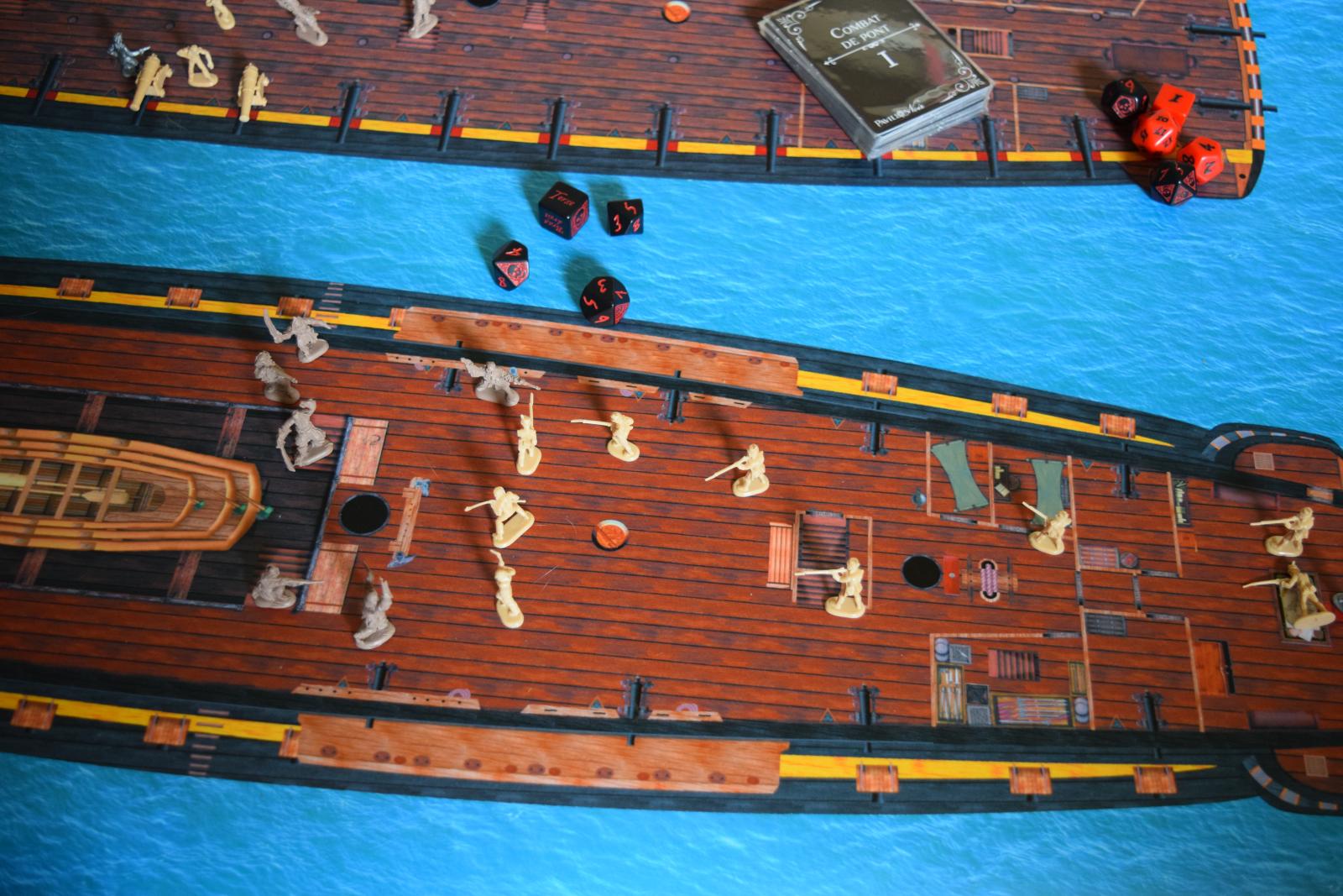 Et pour finir la 3 ème dimension. Un combat sur un navire ne se passe pas que sur le pont principale, mais aussi dans la cale, le faux pont, mais surtout les cordages.