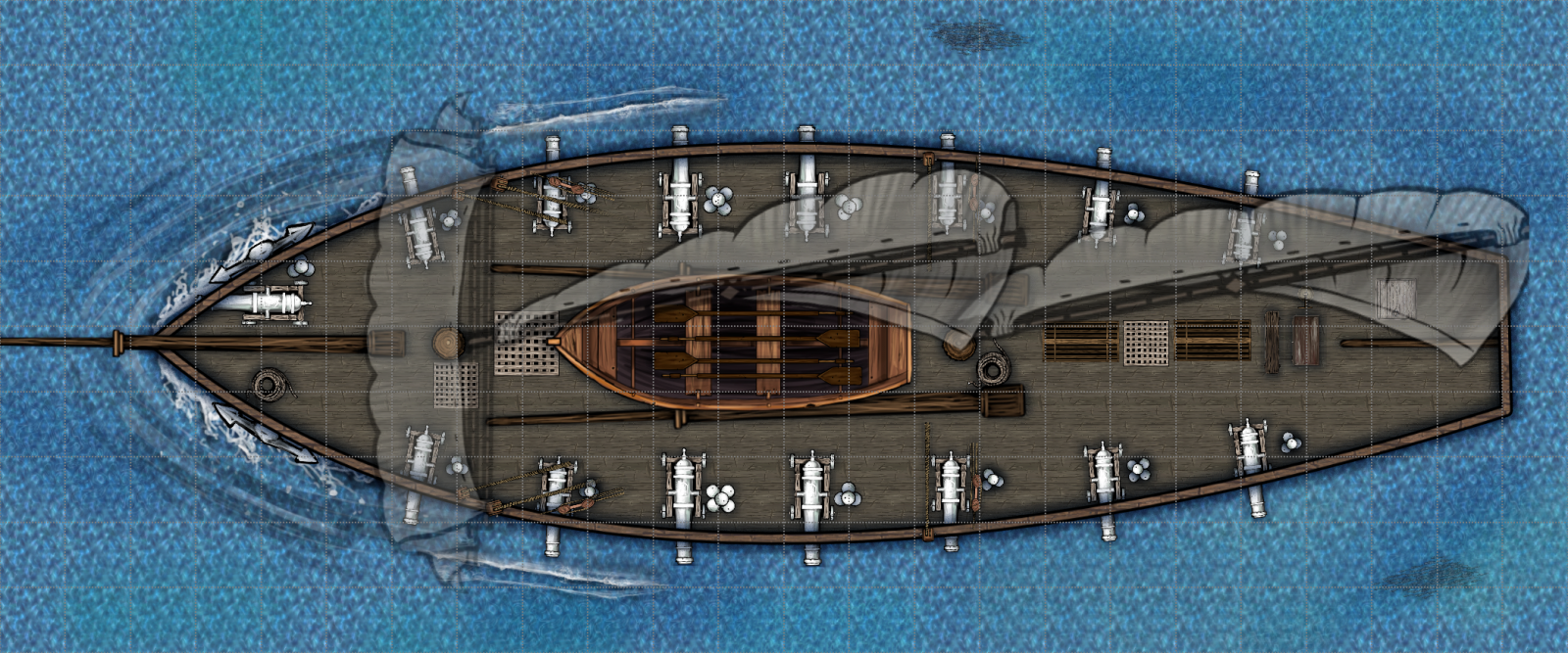 Récement, Heroics Map sur Drivethrurpg à sortie une map d'abordage entre 2 navires. dont ils avaient réalisé précédement la map. Aprés, c'est plus orienté heroic fantasy que historique comme Pavillon Noir.