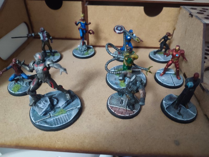 Marvel Crisis Protocol boîte de base VO (les règles sont téléchargeables gratuitement sur internet en français). Tout a été dépunché, et soigneusement classés dans des petits sacs plastiques, les décors et les figurines ont été montées, et les figurines des héros ont été peintes. Tout est en très bon état : 49 euros