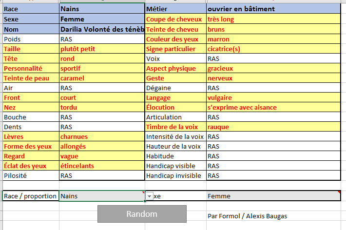 Mais pour ceux qui ont la chance de travailler derrière un PC (oui qui préparent leur partie derrière un PC), j'ai transposé ce générateur sur un excel pour quelque chose d'automatique.