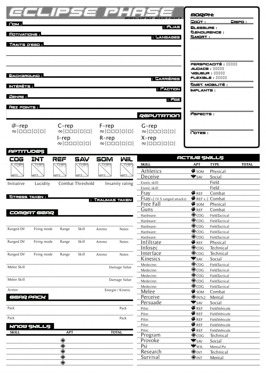 Au delà il s'agit de quelque chose de plus ambitieux ... faire de la feuille de personnage uniquement une feuille d'Ego, et lui adjoindre une fiche de morphe.