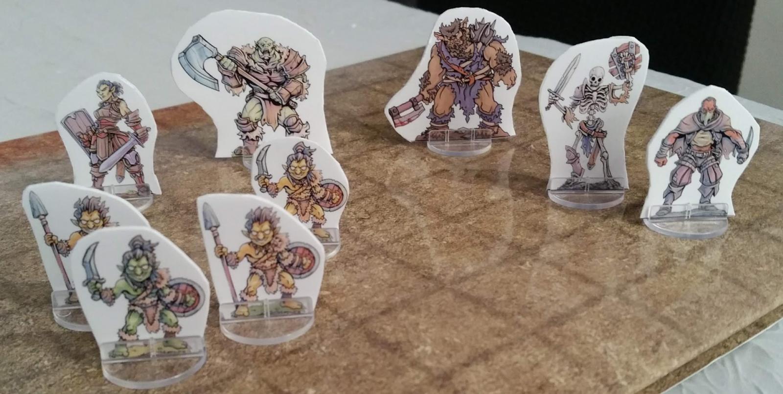 Moi je les imprime sur papier photo (260 g/m²) avec une feuille de gros canson (370 g/m²) en sandwich au milieu et pareil je découpe le tout. J'ai aussi acheté des socles plastiques (site : Tout pour le jeu). Ca marche très bien !